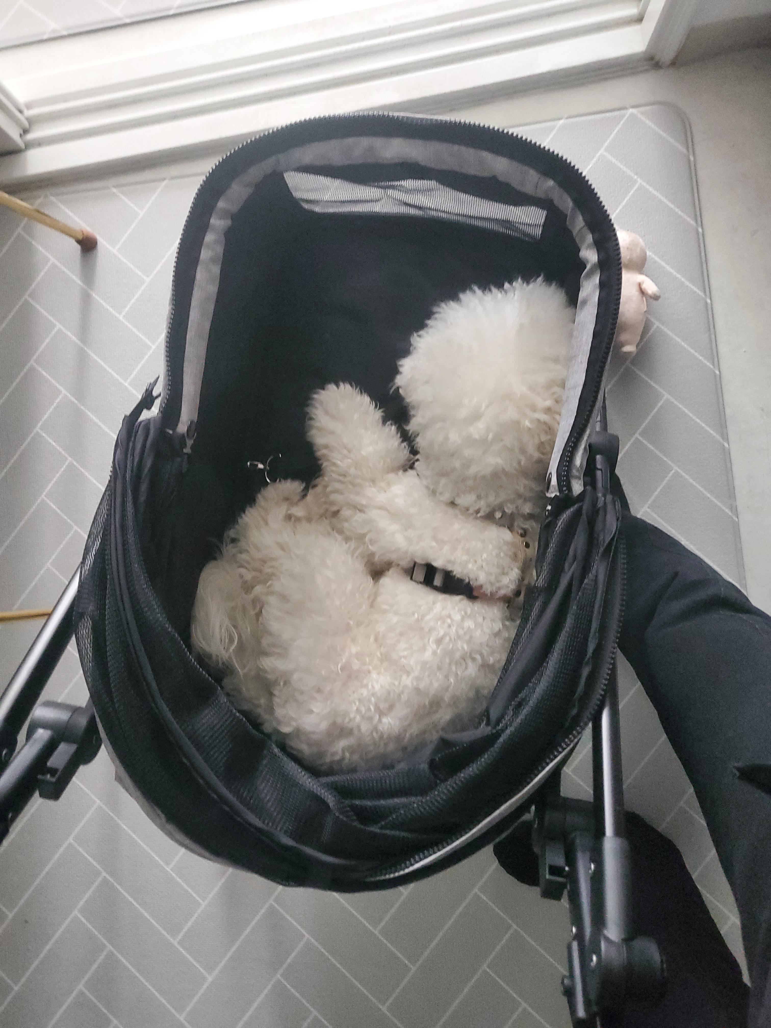 (기존 유모차에선 불편했는지 바로 뛰어 내리려고 하기도 했었다 ..당근으로 처분...🤷🏻♀️)